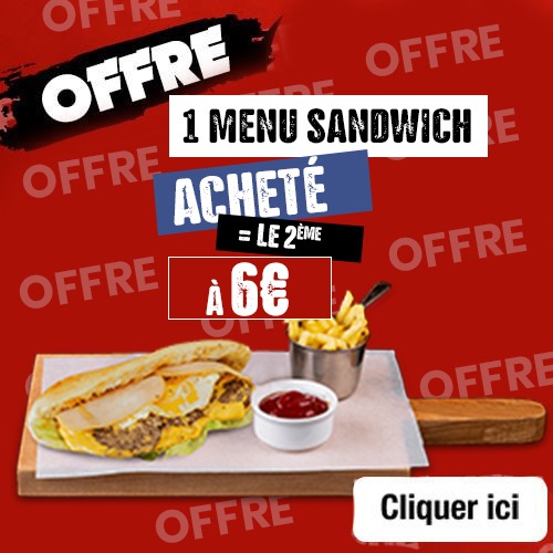 Salade, tomates, oignons, escalope de poulet, fromage, boursin, cheddar + Frites.